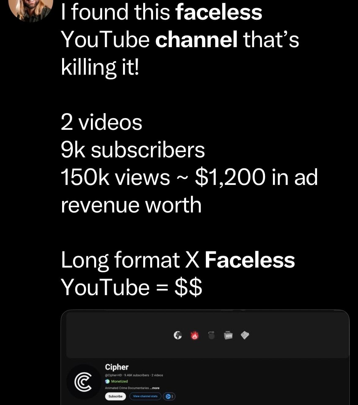 You pick the topic or theme you want your faceless channel to be about — from motivation, AI, crypto, gaming, news, luxury, conspiracy… literally hundreds of possibilities. And we show you which ones pay the most.